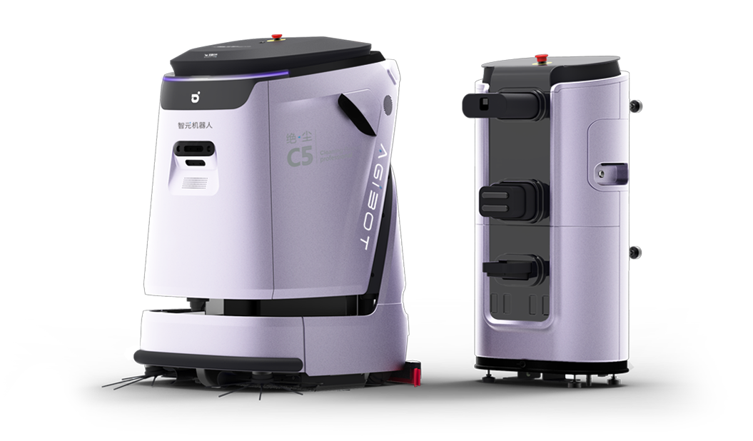 智元绝尘C5是智元机器人推出的首款面向中大型场景的智能清洁设备,C5具备扫地、洗地、尘推等多种清洁功能,同时全面升级清洁能力,满足各类硬质地面清洁所需;设备配备多种传感器,激光视觉融合定位、点云图像融合感知,轻松驾驭各类场景;配备工作站可实现自动充电、自动加排水、自动清洁污水箱,大大降低了维护难度。可提升清洁质量、降低保洁工作强度、降低综合作业成本,同时实现清洁数字化,助力智慧物业转型,带来全新的、智能的、省心的清洁体验。